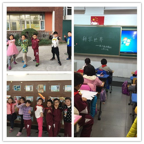 活动分为三个环节,班主任首先邀请了班级里参加过纸飞机校本选修课的同学和对纸飞机感兴趣的小朋友们在班级内进行分享。孩子们把自己在选修课中学到的知识与班里的同学分享,有的孩子分享了纸飞机的相关知识,有的讲解并示范了折叠纸飞机的要领。接着,孩子们进行了纸飞机的制作。最后班级内分组试飞纸飞机。孩子们在投掷自己折的纸飞机时都兴高采烈,期望自己的纸飞机飞得最远。