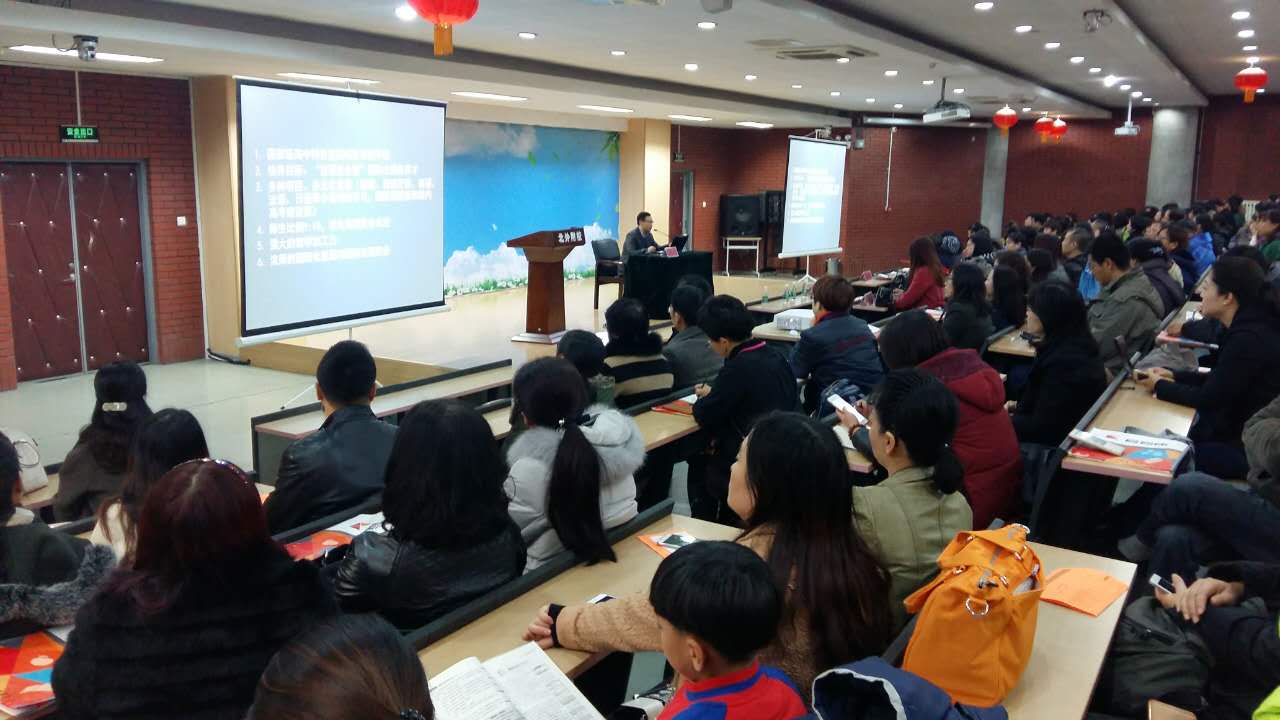 家长会由初三年级部主任李保申老师主持,初中部校长张继军、高中部校长高雁鸣全程参与,并特别聘请海淀区考试中心专家王树明到场讲解政策。首先李老师开场致辞,阐述了这次家长会的意义,并真诚地感谢了所有初三家长对学校与年级工作的支持。接着,高校长与王老师依次讲解了我校高中招生政策与北京市中招政策,为迷茫焦虑中的家长指明了方向。