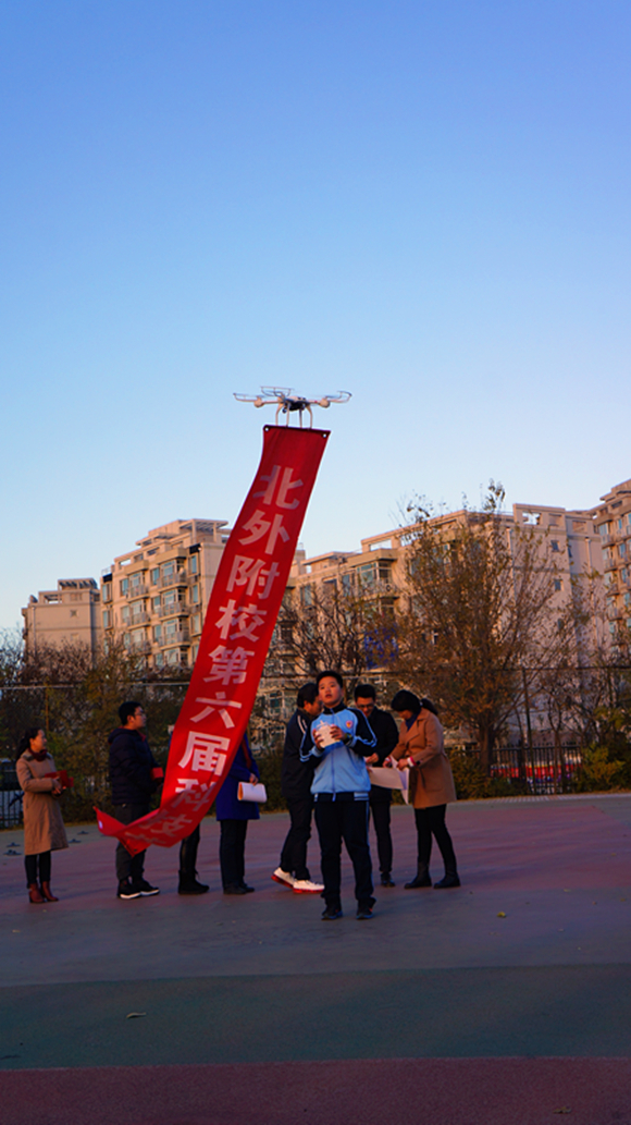 教科室主任李晖对本次科技节的主要活动进行了简要的介绍,她介绍说,本届科技节在这一周的时间里,设计了丰富多彩的活动内容,包括科普讲座,参观steam未来创新教育实验室,激动人心的DI创新思维大挑战、科技小制作比赛,科技板报评比、理综教研室的科技展示活动,科技嘉年华。她希望全校师生能以饱满的热情投入到这一科技节活动中来,在体验中享受创新的乐趣,在创新中享受成长的快乐。随着“本届科技节开始”的话音,由我校科技社团操控的两架无人机放飞科技节横幅点燃了此次开幕式的高潮。