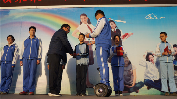 校长林卫民、副校长张继军、副校长副书记高雁鸣分别为获得我校2015 - 2016学年度科技之星、科技优秀辅导教师和科技优秀班集体颁奖。