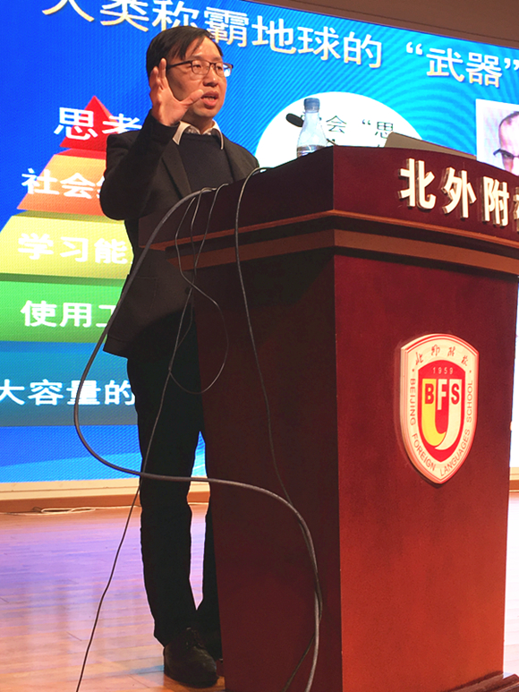 11月14日下午3点50分,北外附属外国语学校国瑞厅座无虚席,丰盛的“科普盛宴”引来热烈的掌声,我校第六届科技节系列活动之科普知识讲座活动正在如火如荼地进行。题为人工智能之路科普讲座由中科院研究生导师曹志冬老师主讲,高一、高二学生饶有兴趣的聆听了讲座。
