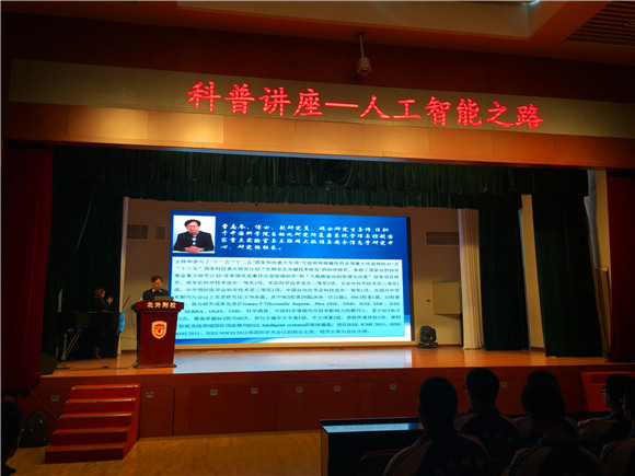 讲座上,曹博士利用从事信息技术工作获得的丰富知识、视频、图片和相关资料,以浅显、通俗、幽默的语言,具体鲜活的事例,从人工智能的定义、从人的智能到人工智能、怎么实现人工智能、人工智能有多强以及对人类生活的影响等方面展开讲解,让学生们了解了尖端科技发展的最新动态。讲座中,曹老师把高深的尖端科技形象化、浅显化、通俗化,向学生们揭开了尖端科技的神秘面纱。在互动环节中,学生们积极提问,表现出对高科技的热爱和对尖端科技的好奇。