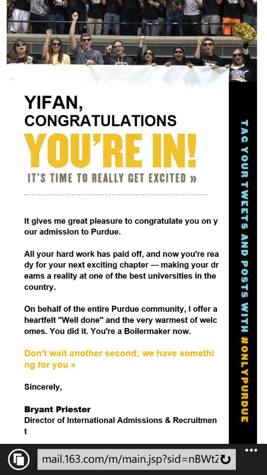 刘一凡同学在我校高中就读期间,曾获得北京市生物学科竞赛一等奖。在2016年度全国生物联赛中荣获二等奖。相信考入普渡大学的她将以此为新的起点,在未来的学习生涯取得新的进步。