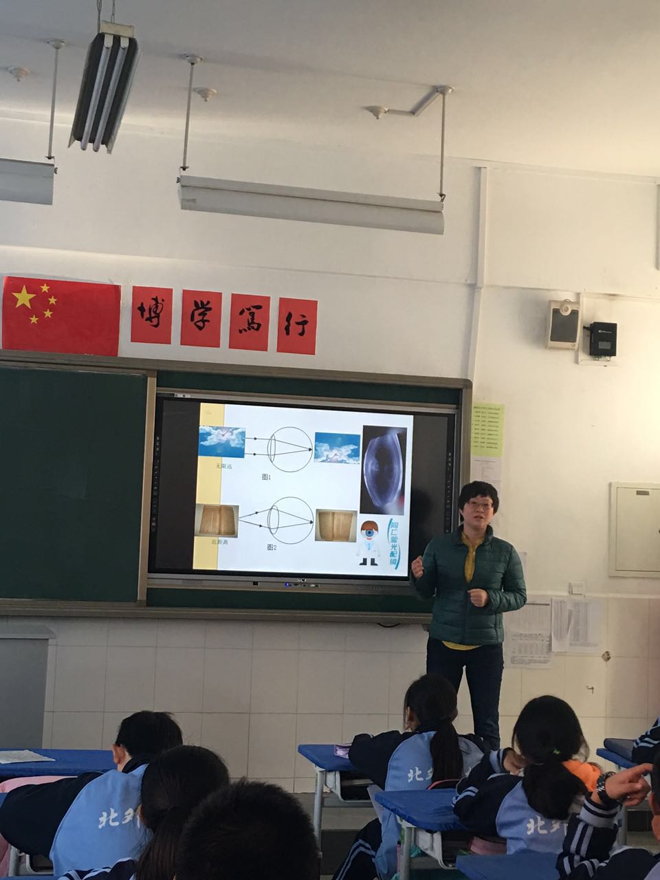 11月15下午,管中心组织开展了 “青少年防近视”知识讲座,本次活动系海淀区疾控中心的专家进校园活动,讲座由同仁医院眼科吴敏主任主讲,初一(1)班全体同学参加了活动。