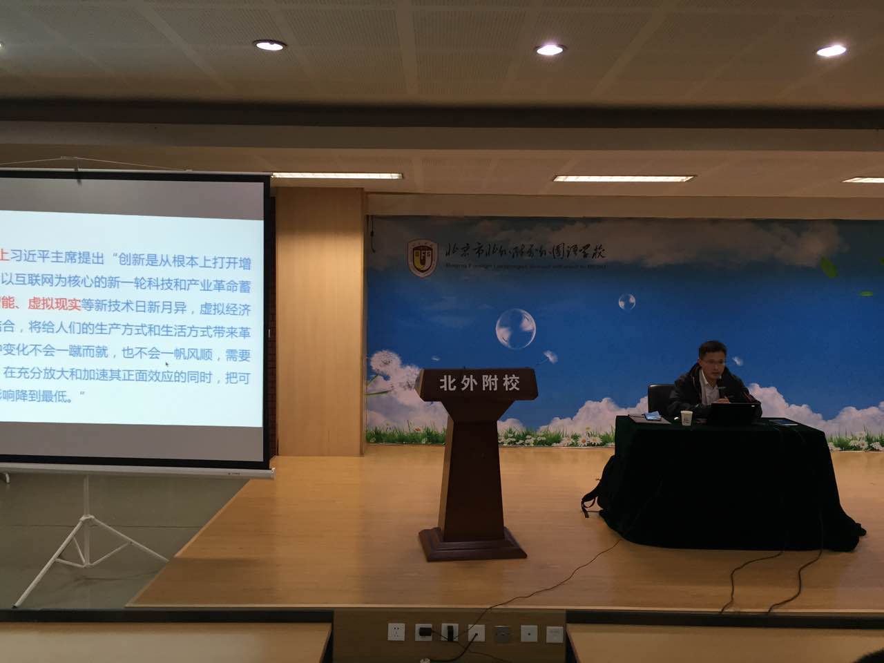 领略科技魅力,感知虚拟世界。为了让学生们在科技节当中更好地知科学、学科学、用科学,感受现代科学技术的力量与魅力,北京交通大学张勤俭教授为初二年级学生带来了主题为《虚拟现实》的科普讲座。全体初二年级学生与班主任参加,讲座由年级部主任张霞主持。