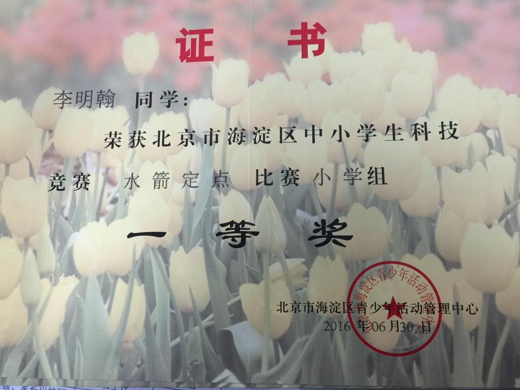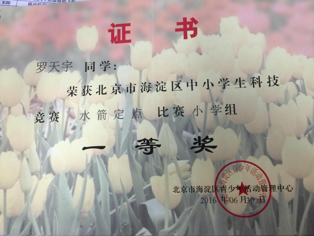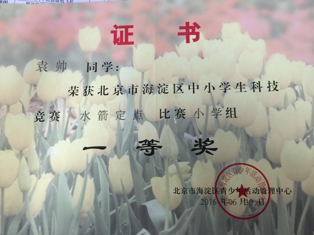 我校小学科学组教师率领12名学生参加了一年一度的“北京市海淀区中小学生水箭比赛”,取得佳绩。本次比赛分定点、留空、留空定点三个项目进行,我校共有11名学生获奖,其中,一等奖4人,二等奖3人,三等奖4人,安雪静老师获“优秀指导教师”称号。