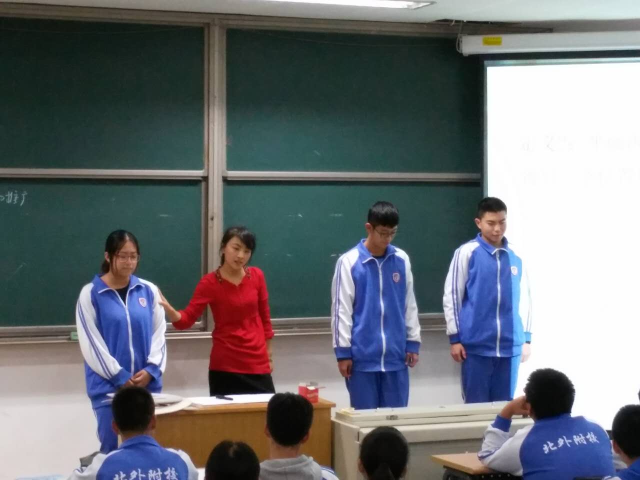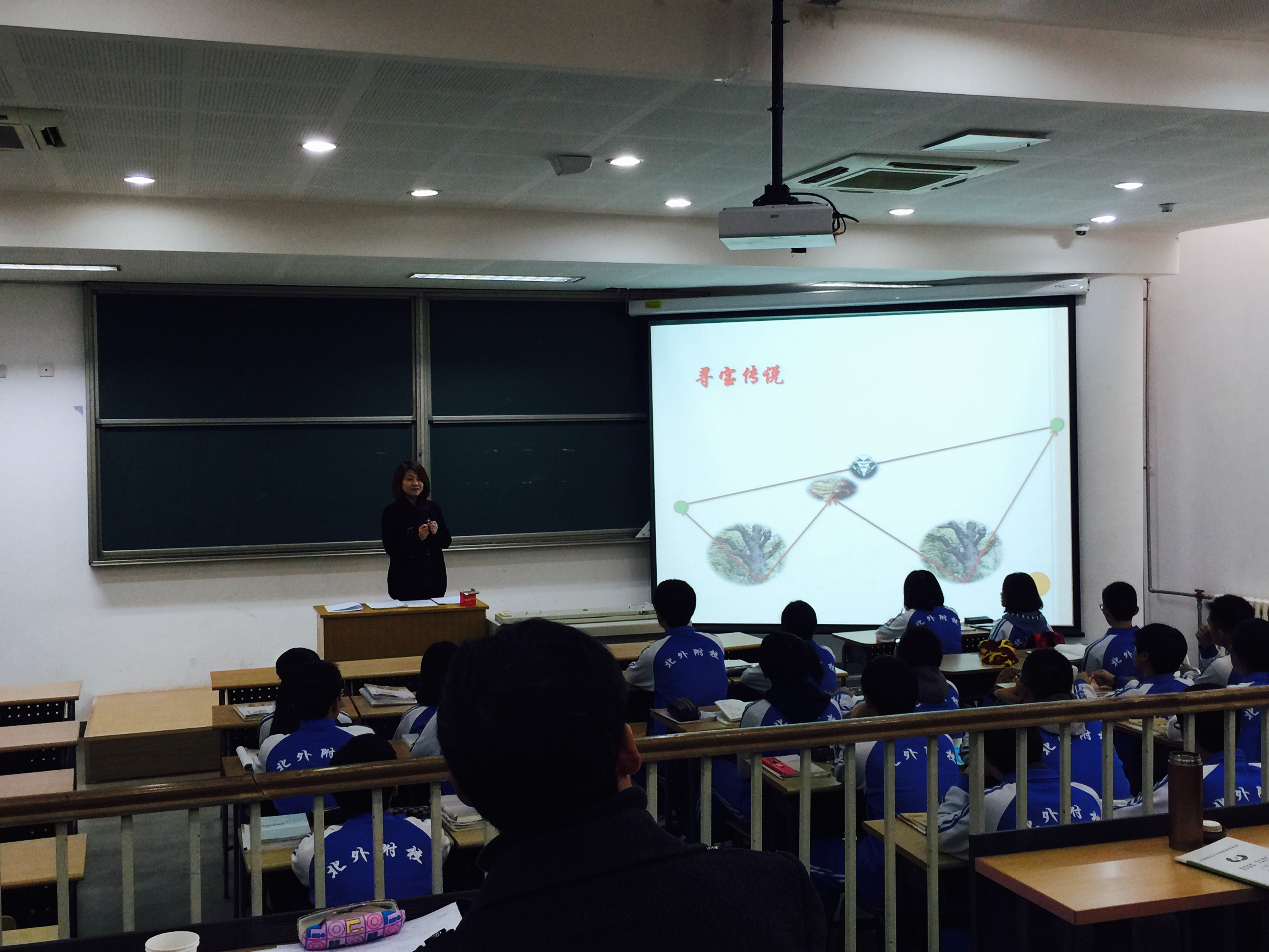此次活动共有展示了三节数学课,分别是高二李晖老师的《直线系方程2》、高三李妍老师的《数列的应用》、高一杨秋芳老师的《角的概念的推广》。基于课题要求,三位老师都在课堂的情境引入方面别出心裁,李晖老师将寻宝问题引入了直线方程的讲解中,带领学生通过将实际问题向数学问题的转化,渗透数学建模的思想,培养学生“用数学”的意识,从而提高学生学习数学的兴趣。李妍老师通过以汉诺塔游戏为开端,引出数列问题,通过具体实例,培养学生从实际问题中抽象出数列模型并用其解决实际问题的能力,体会数学在解决实际问题中的重要作用,并在此过程中培养了学生探究能力和互助合作的团队精神。杨秋芳老师则是以实际生活为例,通过对生活中的现象进行分析,对角的概念进行了推广,然后层层深入,在不断巩固新知的基础上,引入新的概念,使学生了解数学是从实际生活中抽象概括出来的,是为了解决实际问题而发生发展的。