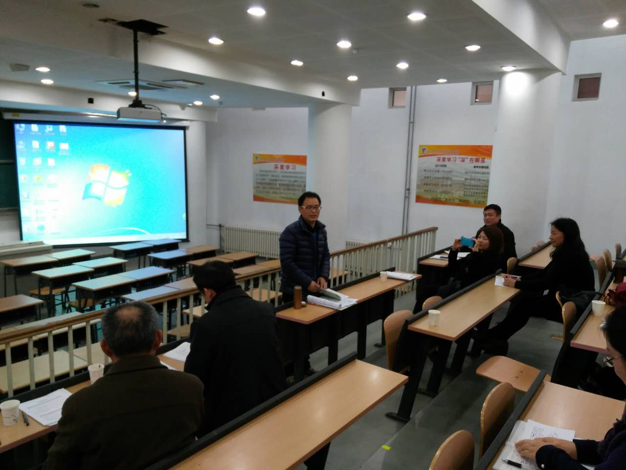 2016年11月8日下午高中数学组召开海淀区“十三五”重点课题(课题编号HDGH20160244)-《挖掘高中数学知识的应用价值,提高学生数学学习兴趣的行动研究—以高中数学课堂的情境引入为例》研究课研讨活动。北京师范大学课程与教学研究院卢立涛教授、北京市海淀区教育科学研究院张禹老师,清河二十中特级教师陈海顺和和伊红旗主任,莅临我校听课并指导,我校初高中全体数学教师参加听课活动。