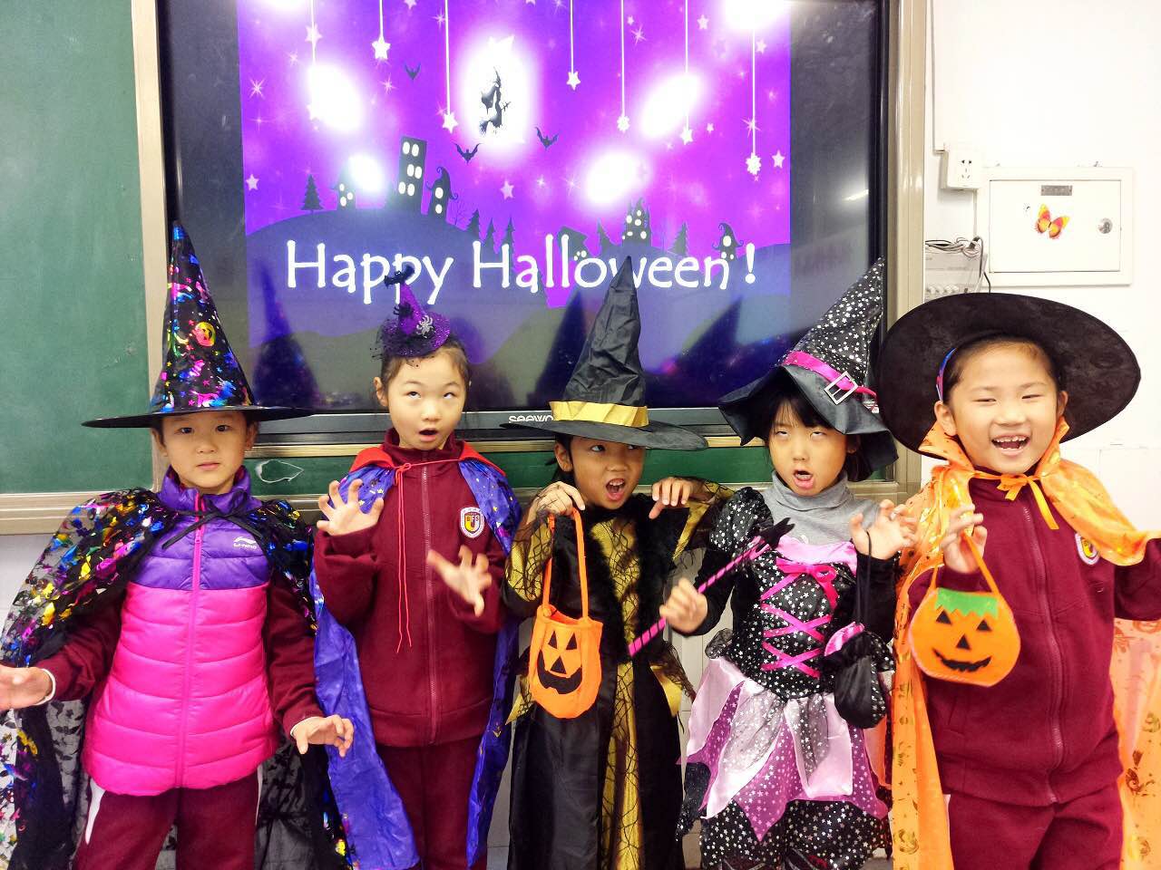 为丰富校园文化生活,提升学生英语学习兴趣,体验西方文化氛围,10月31日,我校一年级英语组老师组织学生开展了丰富多彩的万圣节活动。在课堂上,英语老师为孩子们介绍了万圣节的起源,万圣节的传统,万圣节的标志,万圣节服饰,以及“trick or treat”等等相关知识。教孩子们学唱万圣节歌曲,做万圣节游戏,让孩子们在丰富多彩的活动中学习文化知识。
