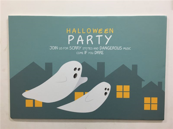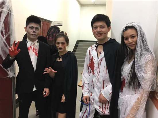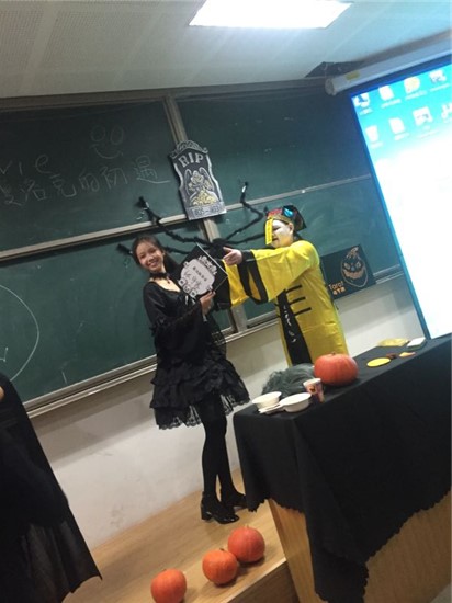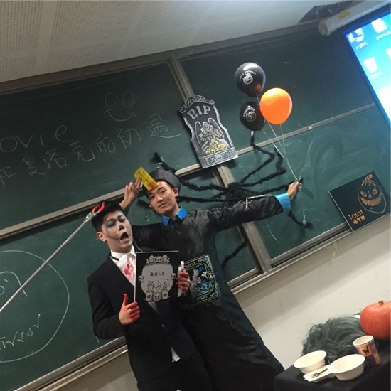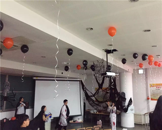 作为我校高中万圣节系列活动的重头戏,在学生会活动部成员精心准备下,10月30日下午,我校高中收到邀请函的近百名师生在录课室举办了恐怖且欢乐的化装派对。
