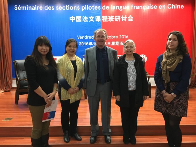 我校于2014年被法国使馆、中法教育部确定为“法文课程班”项目8所试点学校之一。对我校而言,此次研讨会既为法语课程发展与推广搭建了良好平台,也加强了与法国教育部、法国驻华大使馆及中法各校之间的友好交流,对我校的项目发展起到了促进作用。