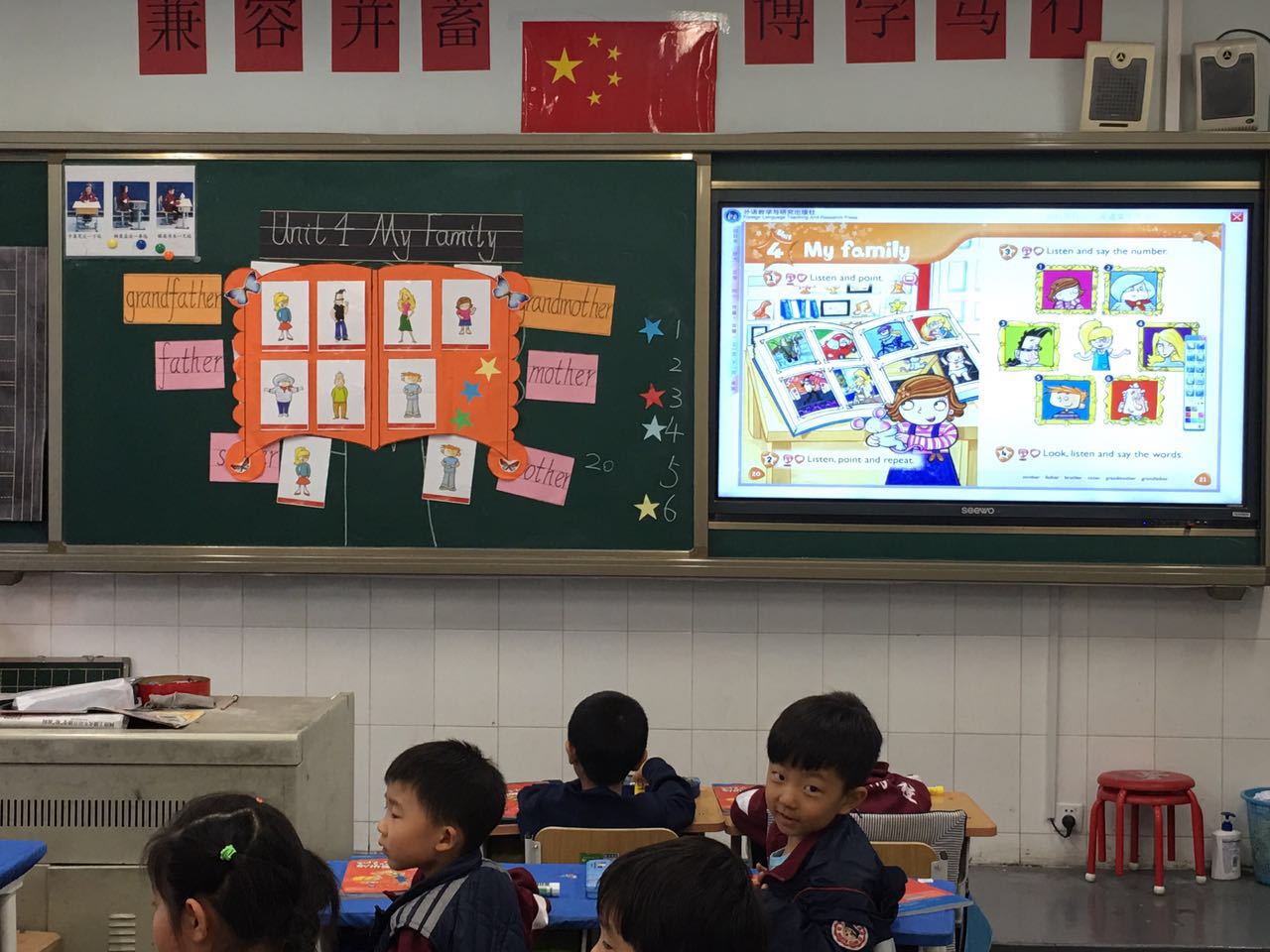 一眨眼,我在北外附校任教已经将近两个月。在这段时间里,我在各位老师的帮助下学习了很多,成长了许多。10月18日我上了自己的“新老师见面课”。我选择的是KB unit 4 My Family这一课,国庆假期结束后我就开始着手准备这一课,除了我自己的一些想法外,我还综合了我的师父季晓霜老师,备课组长李文霞老师以及组里其他老师的各种意见。上完这节课,我去咨询了其他听课老师对我这堂课的意见,并进行了反思: