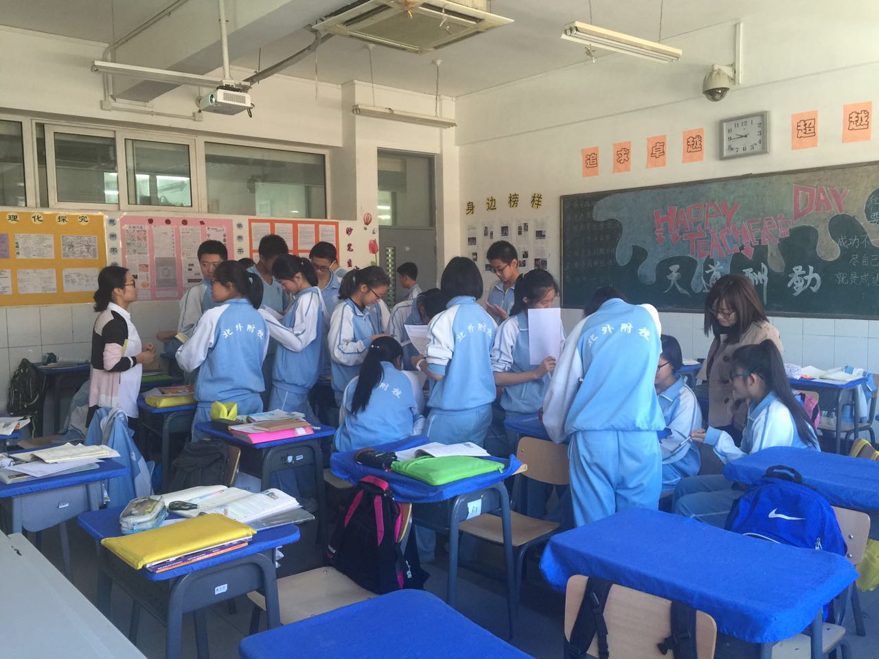 两位督学首先随机听取了初一和初三的两节英语课并在课后与师生进行了座谈。第一节课是初一吴梦娟老师讲授的一节听说课。吴老师在教学过程中通过泛听和精听让学生掌握不同的听力技巧,听后围绕housework 话题进行展开并让学生谈论自己家中做家务的情况。整堂课教学思路清晰,课堂气氛活跃。第二节课两位督学来到初三,听了许秀老师的一节阅读课。课堂内容主要是通过阅读,帮助学生从文化的角度理解得体地使用语言的重要性,并掌握不同场合礼貌用语的使用方法。教学中运用真实的生活情境引导学生真实地运用语言,在用中学。