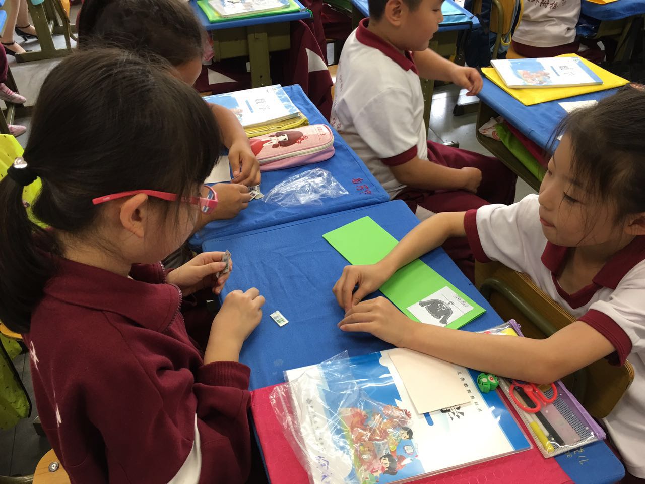 最后一个环节是开模拟服装店。四人一组,组长为店长,其他同学为顾客,用学具钱币买东西,最后一个学生说出支付的钱币,其他同学猜买的是哪件衣服。目的在于让学生感受买东西的全过程,培养学生相互谦让、有秩序的进行小组合作。