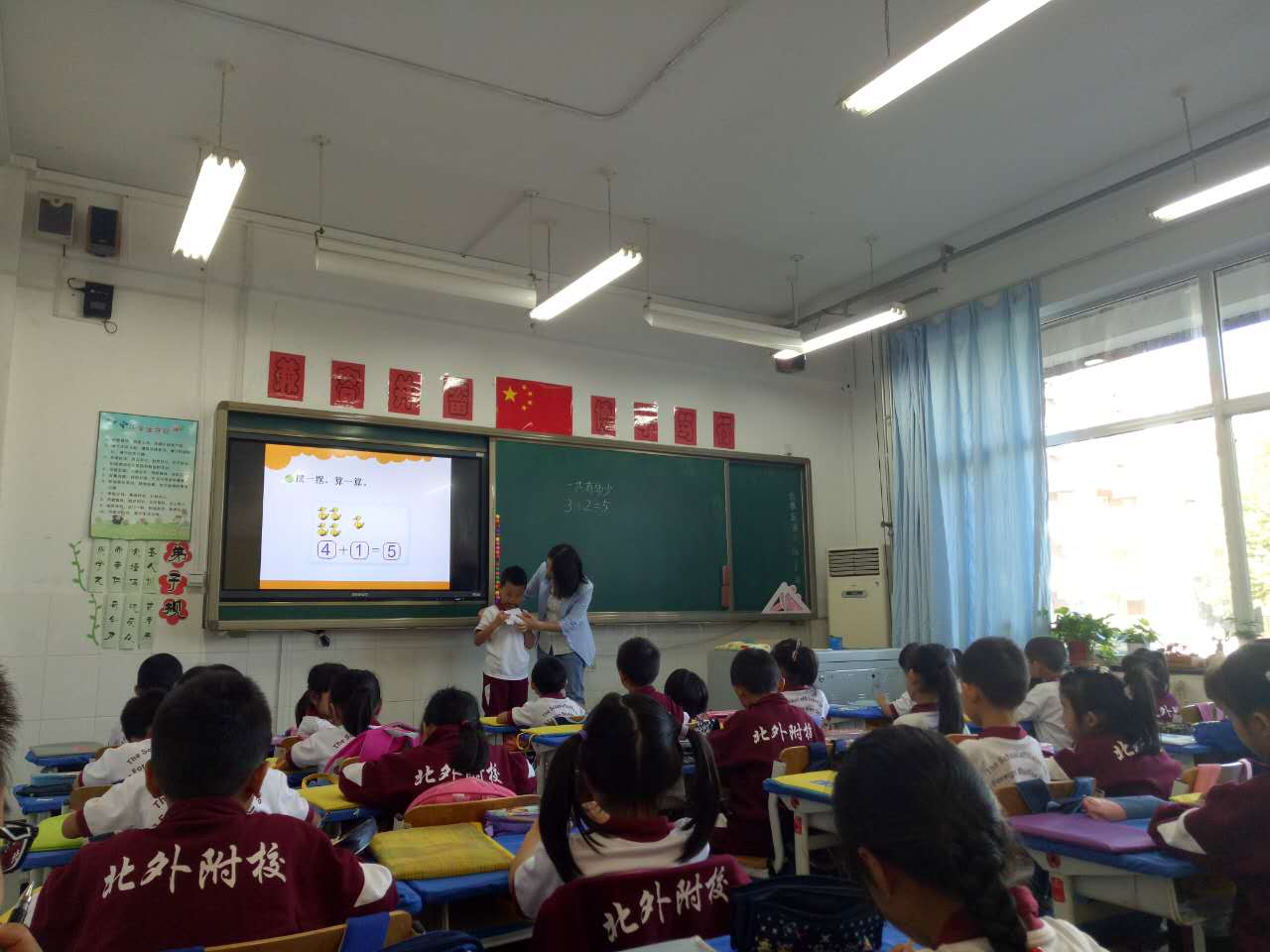 9月20日上午,石家庄谈固小学教师来到了我校一年级(9)班的数学课堂,这堂课由柏庆杰老师执教,课堂主题为“‘加与减’的世界”。