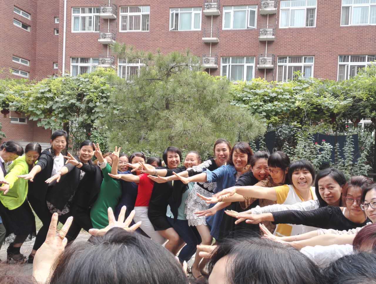 拓展活动主要包括热身活动、“马兰花开”、“心有千千结”、“人椅”4个活动项目。“马兰花开”活动中,通过肢体接触打破了老师们的人际界限,增进了团队融合,使老师们体验到归属感的重要性。“心有千千结” 活动让老师体会面对问题时集思广益、相互配合、共同解决问题时获得成功的快乐。“人椅”活动让老师们感受到来着团队中其他成员的支持与信任、懂得承担团队责任与心怀他人,体验到团结一心、永不言败的团队精神。活动在老师们的欢笑和呐喊声中结束。