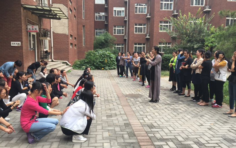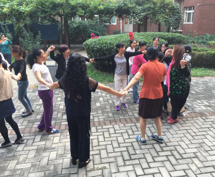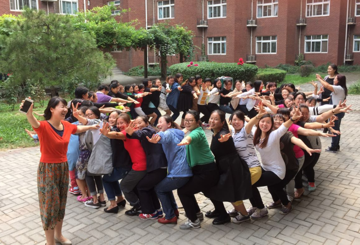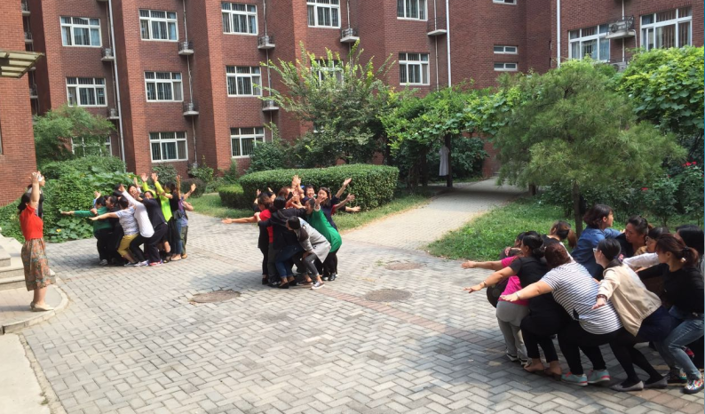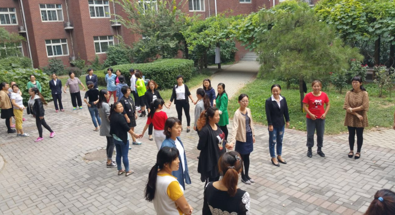 “人椅”活动中,老师们感受团队成员的信任与支持、体验承担团队责任与心怀他人