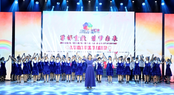 在随后的庆祝教师节文艺汇演活动中,7所学校选送的节目精彩纷呈,大会在我校初中合唱团演唱的《The Rhythm of Life》声中圆满结束。歌曲的多声部演唱,浓郁的爵士风,熟练的英语表达,既展示了我校中学生的音乐素养和积极向上的精神风貌,也展示了我校学生的外语优势。