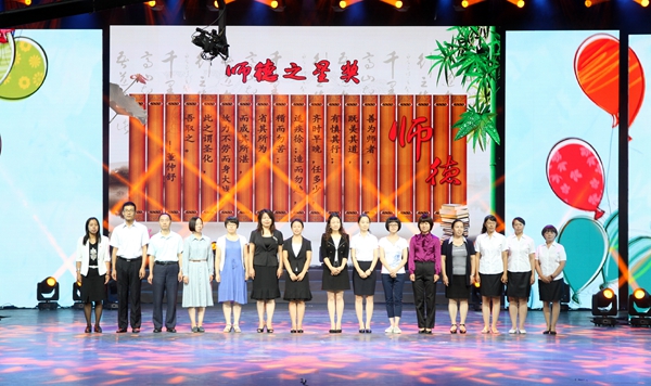 来自学区内7所学校的百名优秀教师纷纷走上领奖台。我校有8名教师受到表彰,许祥、张霞被评为师德标兵;李萍、陶懿被评为敬业楷模;王向华、叶方当选教学标兵;闫亚军和廖沧龙分别当选为师德之星和青年榜样。傅首清、尹丽君等领导为老师们颁奖。