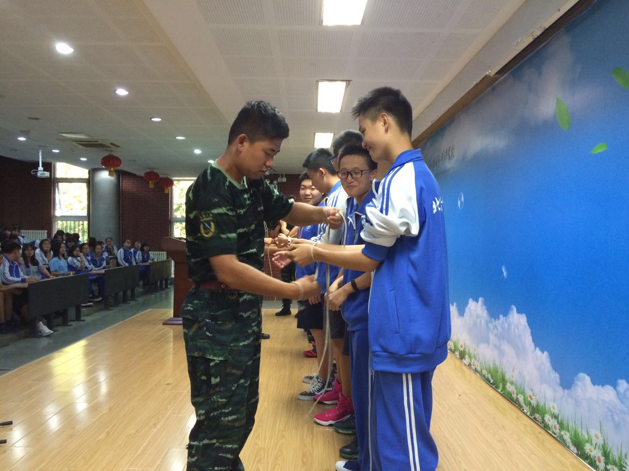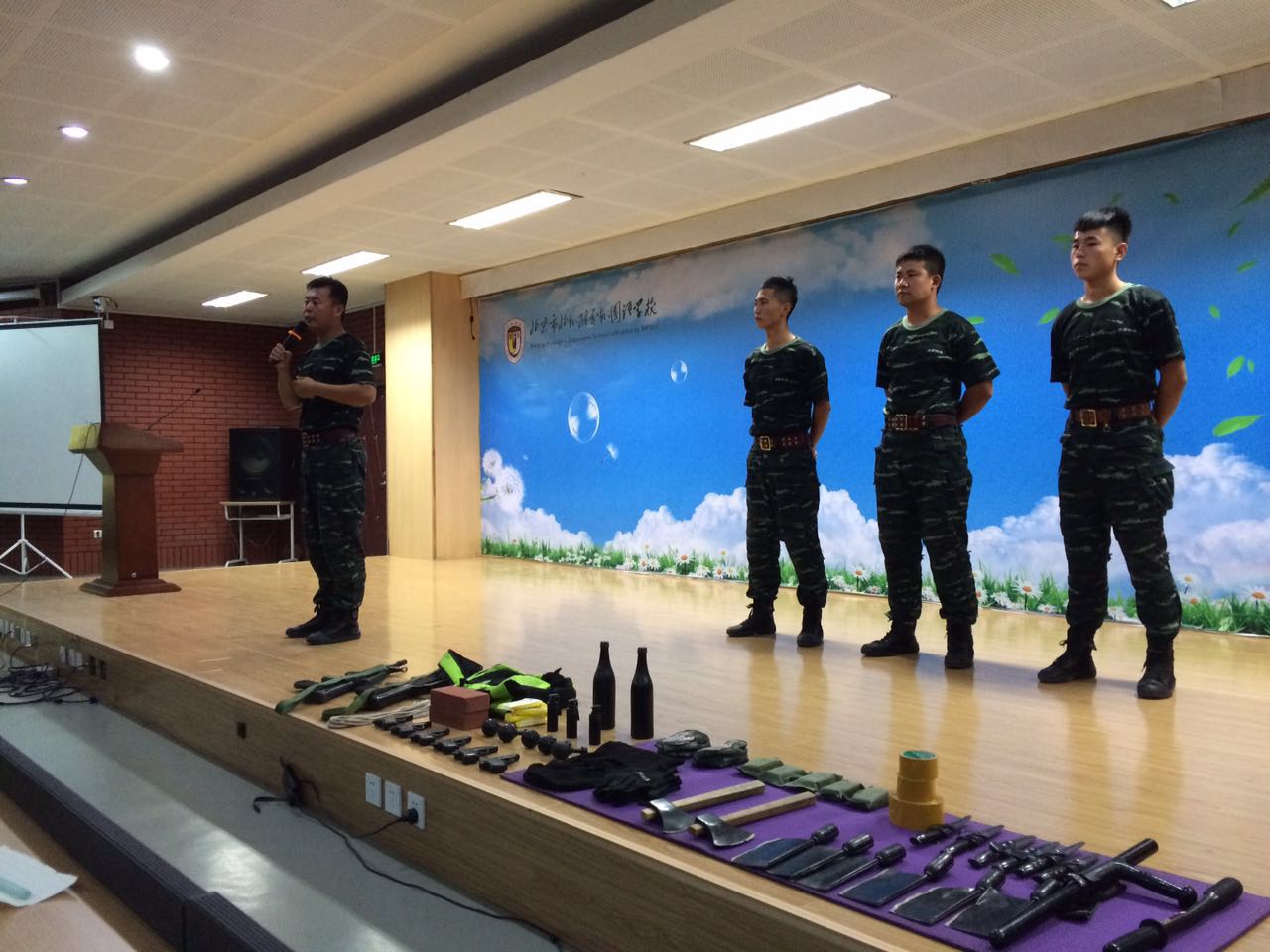 为了帮助学生树立必要的安全意识,提高面临突发安全事件自救自护的应变能力,根据教育部制订的《中小学公共安全教育指导纲要》文件的相关要求,北京市海淀区青少年活动管理中心开发了“安全自护 从我做起”——海淀区中小学生安全自护体验活动。在海淀区教委的大力支持下,我校高中于9月19日下午举办了防恐防暴安全讲座。本次活动由巨峰特训营教官、前雪豹突击队狙击手马建峰主讲。高一高二年级全体学生和部分教师参加了此次讲座。