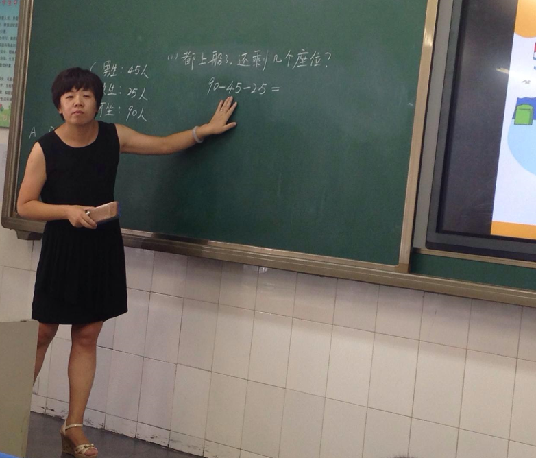 这节课的主题是《秋游》(连减),王海琳老师首先让同学们回顾了上节课连加的三种解法,并且故意在板书竖式时出错,让同学们挑错、加深印象。之后开始讲授新知,从观察主题图开始,让学生先收集数学信息,再提出数学问题。在解决问题的过程中,王老师让学生自己列出算式和竖式,并且分别对比了口算法、连加竖式、分步竖式和综合竖式的优缺点,最后优化了算法:分步或综合竖式。在巩固新知环节,王老师让同学们在算术纸上写上计算过程,并下去分别指导。整个教学过程紧凑、充实,同学积极思考、回答。