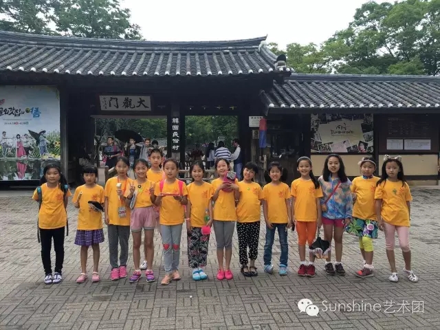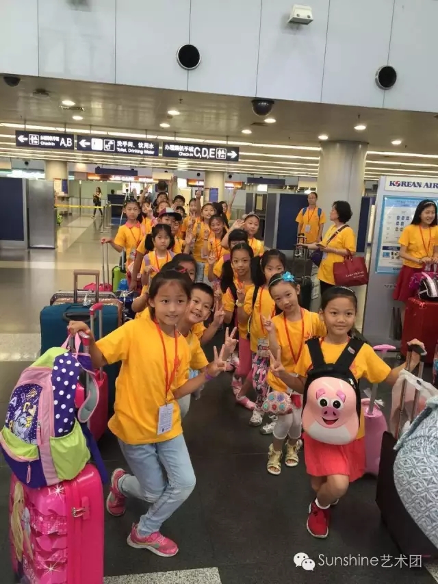 2016年7月16日,在纪芳、孙文娟、解轶雯与数名陪同家长的带领下,“Sunshine艺术团”的小团员们飞抵韩国开始了比赛的旅程。第一次离开父母家人集体出行,孩子们在新奇与激动之余还能严格遵守团队纪律,将中华民族文明礼让的传统美德带出国门,使老师和家长由衷欣慰。