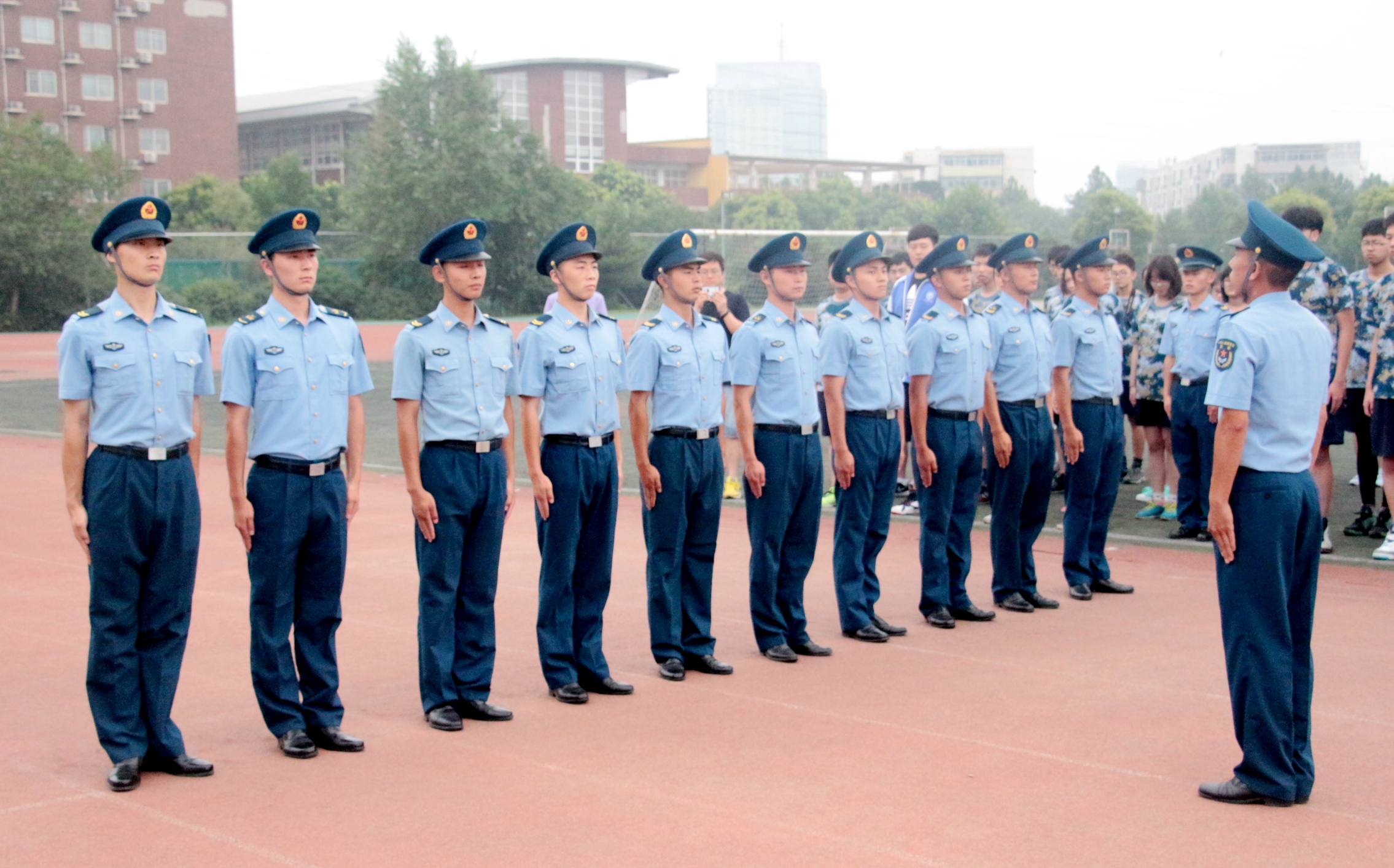 在仪式上,全体教官还作了精彩的示范表演,博得了阵阵掌声。相信同学们经过一段时间的训练,也能在汇报表演中表现得像教官们一样出色!
