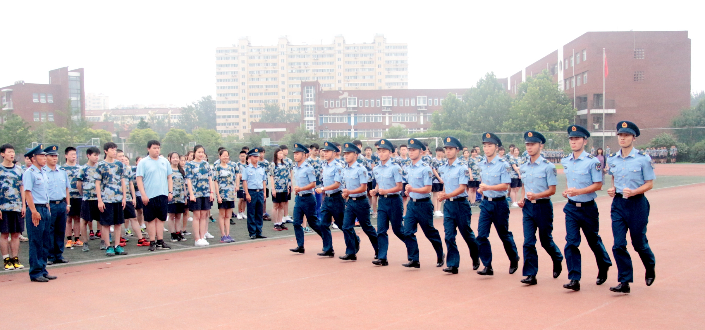 7月8日8点,我校全体高一师生在操场集合,参加了主题为“体验军旅生涯,成就精彩人生”的军训开营仪式。
