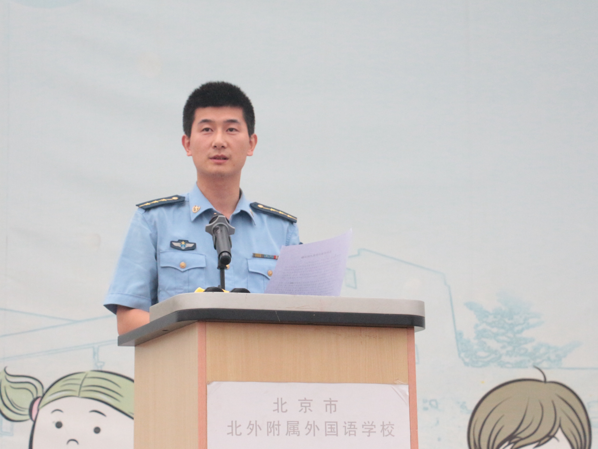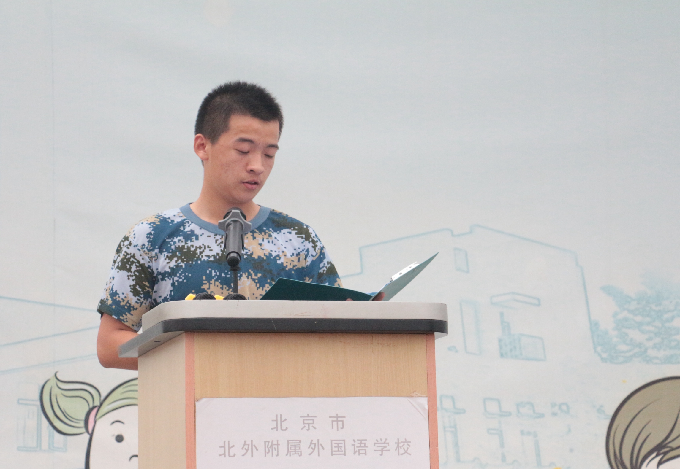 北外附校校长助理、高中副校长王静做军训开营动员讲话
