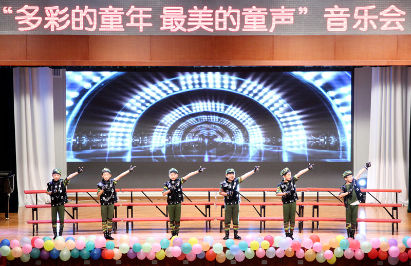 第三个节目是男生小合唱《游击队歌》,一首经典的抗战歌曲,身着迷彩、精神抖擞的小歌手唱出了游击队顽强抵抗的精神,同时也激励着孩子们珍惜眼前来之不易的幸福生活。