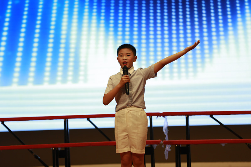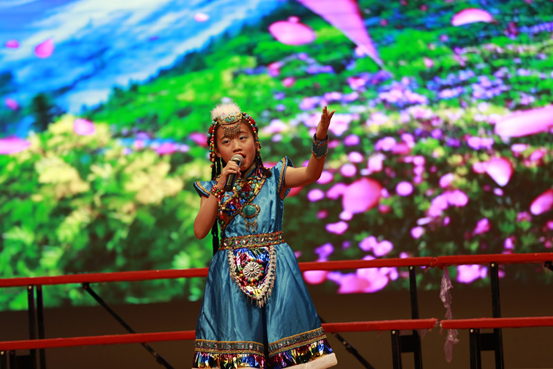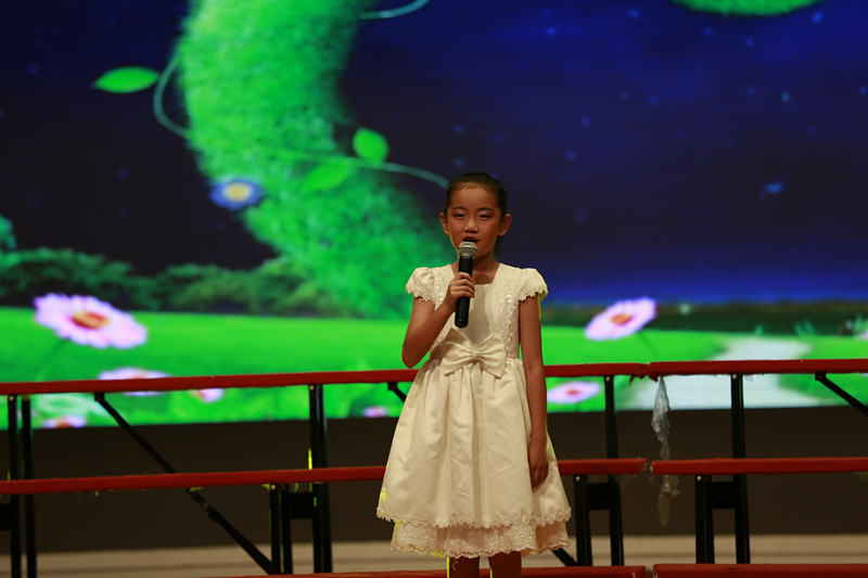 第二个节目是四年(6)班的李欣妍同学为大家独唱的《天路》,这是一首耳熟能详并很有一定难度的歌曲,李欣妍用天籁般的声音带我们走进西藏,置身于那条神奇的天路,赢得了在场观众的阵阵掌声。
