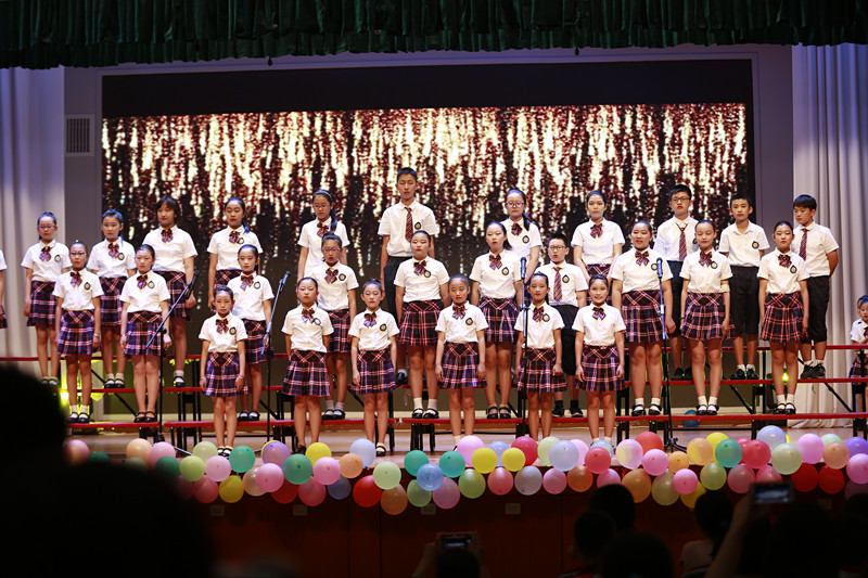 接着,校童声合唱团的学生为大家演唱了两首多声部合唱歌曲《Can you feel the love tonight》、《You raise me up》,多声部的完美结合、孩子们清澈柔美的声音唱出了附校最美的和声。