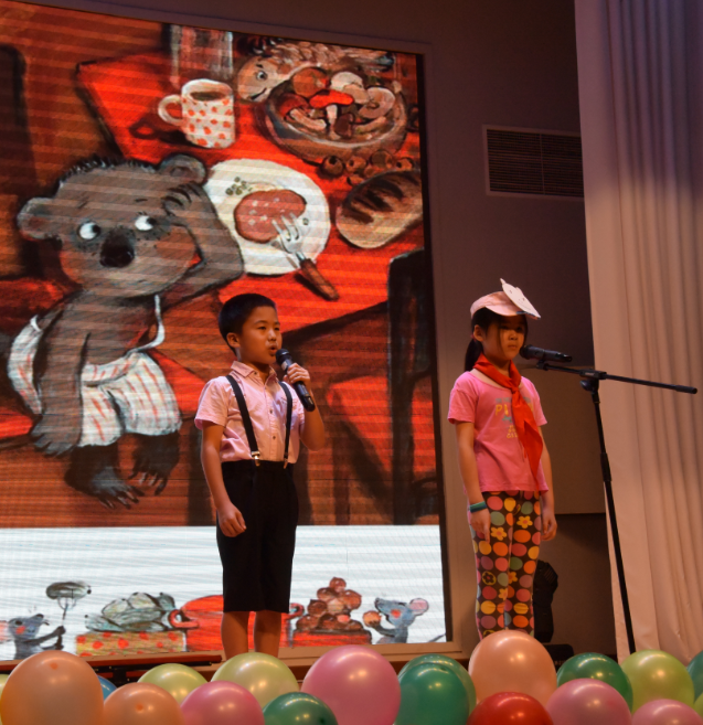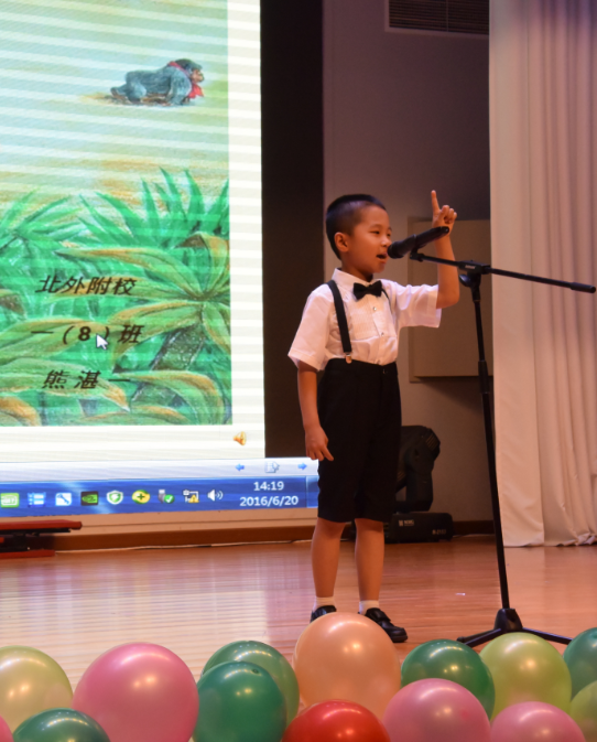 5月16日下午,一年级全体师生齐聚“国瑞厅”,举行 “童星故事会”比赛活动,参加活动的领导有:北外附校副校长、小学校区校长于苒;小学副校长孙亚楠;教务主任:李琳,副主任:王雪;德育副主任:杨建、以及各年级组长和家长代表。