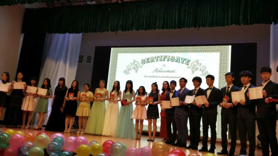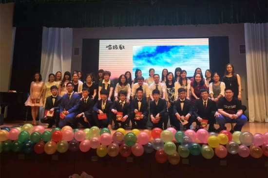 典礼在雄壮的国歌声中拉开帷幕。副校长高雁鸣致毕业词,回顾了两年来学生在我校的学习和成长,澳方代表David对学生们提出了未来的展望。家长委员会代表,梵梦妮家长为毕业生们带来了情感饱满的发言和谆谆教导,向同学们传达对他们的鼓励和殷切期望。最后,毕业生代表代张辉同学发言,总结四年来学到的知识与技能,深切表达对学院领导、老师的感激之情和对同学、朋友的不舍之情,以及在澳洲开始下一段人生旅程的坚定信心。每一位演讲者的精彩话语都深深感动着在场的每一位师生,赢得掌声阵阵。接着,由高校长、David一起为每位赴澳生颁发了录取通知书。最后,在全体学生庄严宣誓后,为所有任课教师送上了代表心意的花束。典礼的第二部分,是每一名毕业生的才艺展示,学生们或青涩或成熟的表演为他们在附校的最后道别添上了多彩的一笔。最后,来自天津分校的校友和上届VCE班优秀毕业生张潇分别带来祝福,鼓励高一VCE新生努力学习,不负母校的栽培与期望。