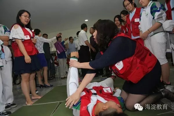 在“红十字生命教育展室”里,我校三位老师作为海淀区首批红十字教师见习急救师资对学生进行了急救辅导。我校也将在本学期期末筹建红十字培训站,并就帮助学生了解急救知识、探索人道法课程、成立学校急救队等活动进行安排。
