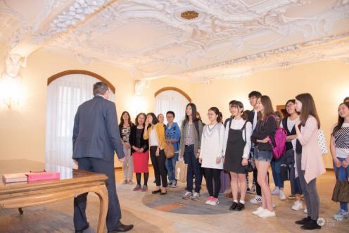 我们之后还收到了市长的邀请,去市政大厅听了他的一些关于怎样把马里博尔市建设的更好的想法。刘长虹主任代表学校向市长赠送了礼物,他也给我们每人准备了一份礼物。