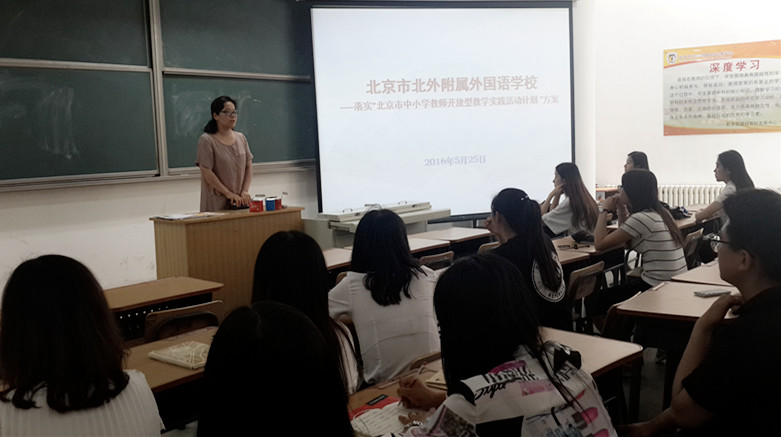 结业仪式分三项内容,首先是我校工会主席杨晓琴老师为全体新教师解读落实“北京市中小学教师开放型教学实践活动计划”方案,中小学开放型教学实践活动是市教委“十三五“教师培训的重点工作,目的是共享优质师资,促进义务教育均衡。第二项是由新教师优秀代表潘铎轩老师发言,以“把握今天,希冀远方”为主题,分别从职业理念、课堂教学、班主任工作三方面跟大家分享交流这一年工作中的所感所悟。最后一项是本届新教师校本培训的总结和发奖环节,张老师宣布:本届参加校本培训的26名新任教师,全部结业,授予“北京市北外附属外国语学校新教师校本培训结业证书”。同时为本届培训中获得优秀个人单项奖的老师颁发证书,获奖名单如下: