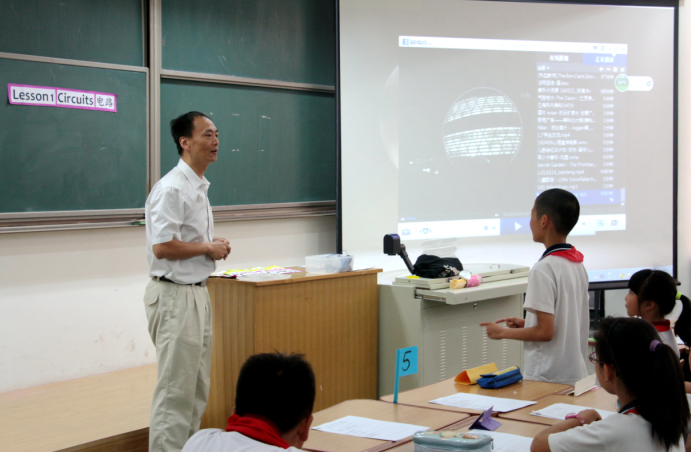 接着,课题组专家和老师们在录课室分别听了两节《双语科学》教学研究课,我校岳阳老师执教二年级“Paddle Boat(轮叶船)”,广东执信附小邢伟方老师执教四年级“Electricity(电)”。课后,专家老师们对岳老师、邢老师的课进行了学科教学分析,认为两节双语课在语言目标和学科知识目标的处理上都恰到好处,教师能放手让学生大胆实验,让学生真正参与到课堂活动中,去更好的体验和探索教学核心内容。同时,专家也称赞了老师们将目标词语在板书中以“双语”呈现的环节,并强调了这一环节在双语教学的重要性。评课后,两位专家提到希望两校以后可以经常沟通,共同促进双语科学教学的研究。