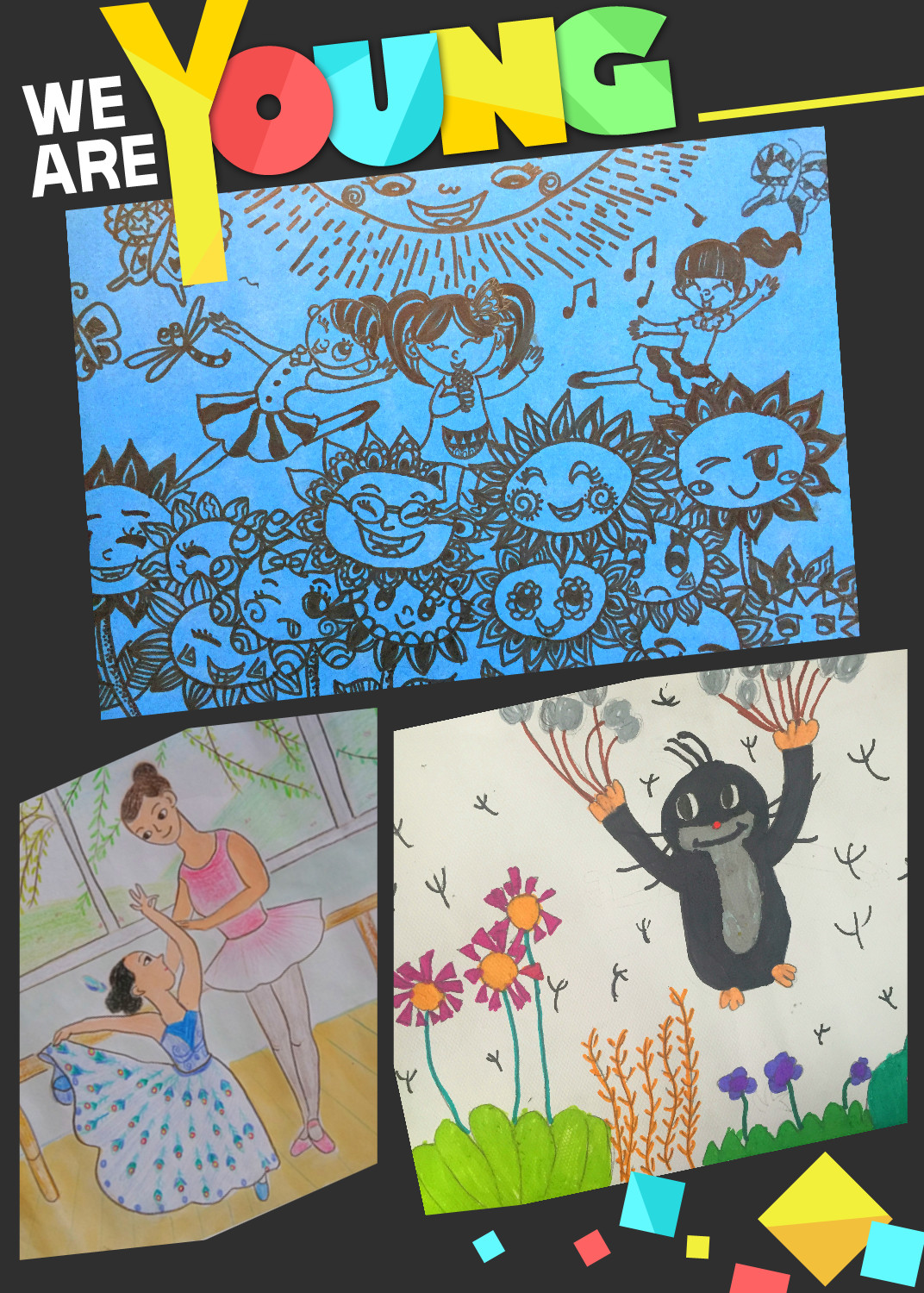 这些画的小作者们,天真烂漫,性格各异,但对于绘画,都是天生的喜爱。希望这次画展不仅仅是给他们在艺术道路上的鼓励,更希望在他们还没有被现实社会所束缚之前,将他们纯真的思维片段凝固,留住艺术上的“璞”与“真”。