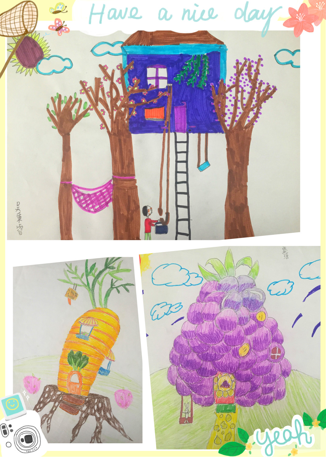 下面展现的是三年级学生部分优秀作品,这仅仅是冰山一角。他们手中的画笔自由而丰富,他们的想象力没有被现实束缚,思维没有被客观逻辑束缚,无论是嘴里的话,还是手里的画,皆由心生,不加雕琢,童言无忌,童画无禁。