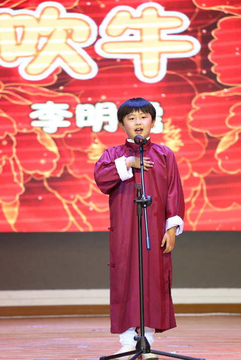 在欢快的《Baby》乐曲中,同学们有节奏地挥舞着手中的荧光棒,第一篇章“歌舞童年”拉开序幕。集体舞《青春修炼手册》阳光动感;《茉莉花》古典与现代巧妙结合。舞台剧《兔子王国的危机2》继去年的《兔子王国的危机1》之后,又有更多的创新。课本剧《丑小鸭》的全英文展示,充分展现了义务班的英语水平。歌舞《龙船调》民族特色浓郁,为了达到更好的表演效果,连小演员们的演出服都是定制的。相声《吹牛》,吹的不是别的,而是同学们的多才多艺。创意相声剧《傻站着》,仅听他们的串词“学习,他们是勤奋的;生活,他们是阳光的;合唱,他们是专业的;搞笑,他们是认真的”,就能感受到这个节目的欢乐气氛。