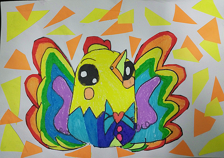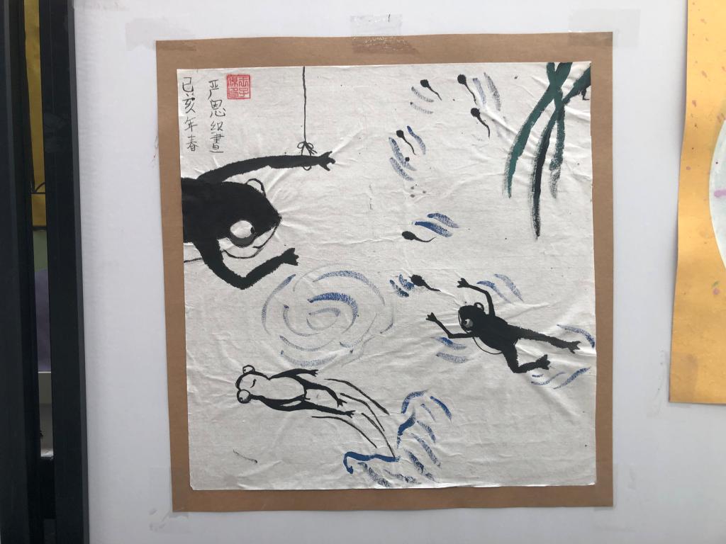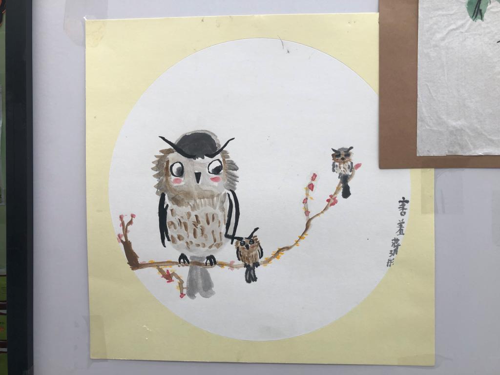 我校儿童国画选修课更加注重学生丰富的想象力和创造力。课堂上通过小写意花鸟画入门,初步学习简单的花鸟、瓜果、动物等生活常见物品画法,学习国画基础知识和构图、用笔、着色、用水等方法技巧。