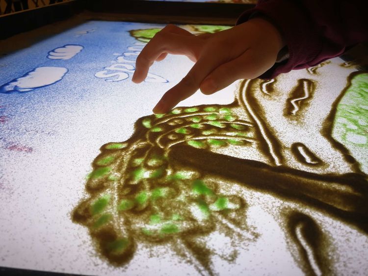 我校作为国内最早开设沙画课程的学校之一,至今已经走过了五年历程。沙画是一门神奇、前卫、高雅的艺术,作为一种全新的艺术形式,目前深受广大学生的喜爱。在校领导的大力支持下,我校沙画教学环境不断优化,教学方式不断创新,教学内容不断丰富。在原色沙画基础上,我校师生共同探索尝试加入了彩沙,并与音乐、书法、双语朗诵、国画等多元素相结合,以及双人“四手联画”的展示形式,使得我校小学生在沙画创作的艺术形式上得到了极大的丰富与发展。
