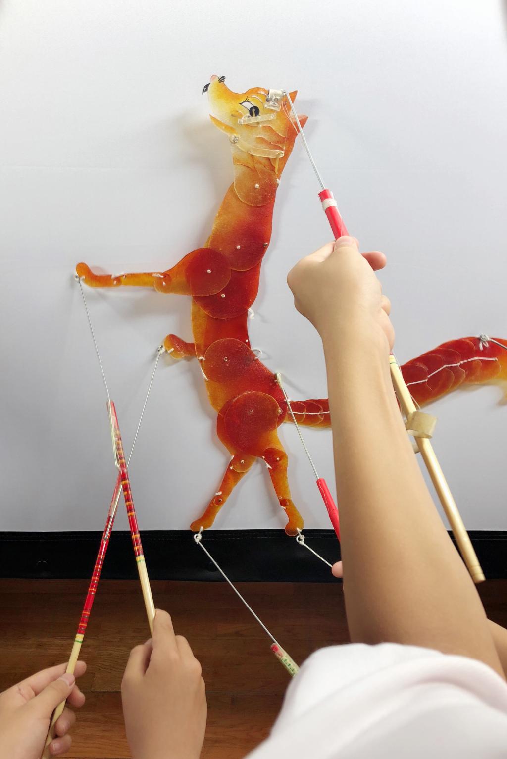 我校在皮影戏方面也是在尝试与摸索中进行,作为我国的非物质文化遗产之一,皮影戏有着其独特的魅力:它能用最普通的道具,演绎出蕴含深刻道理的故事。从皮影的历史、材料、如何制作等知识,到把竿操作、配音乐跟演,老师们在外聘专家的协助下和学生一同成长。一二年级的学生学习《金斧头银斧头》,三四年级的学生练习《狐狸与乌鸦》,A、B角色轮流练习,力求达到每位学生拿起相关角色都能演一演的熟练程度。
