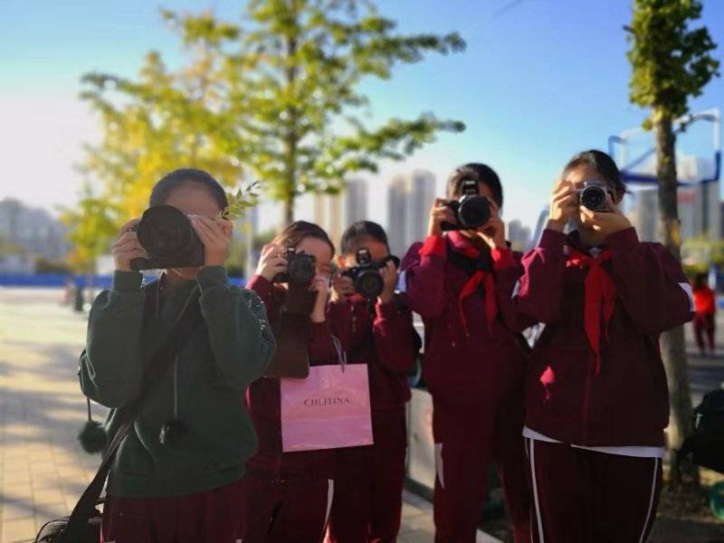 应学生的要求,我们开设了摄影选修课。我们在室内搭影棚,在校园中寻找拍摄点:寻找春天,镜面摄影,人物摄影,互相做模特来拍一些有趣的合成照和错位照,教师请了舞蹈小演员来做模特,为学校拍摄一套形象照。有时,摄影课上的孩子还当起了学校的活动的小记者来练习活动摄影。