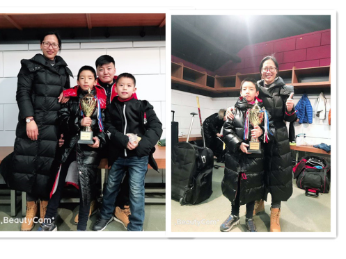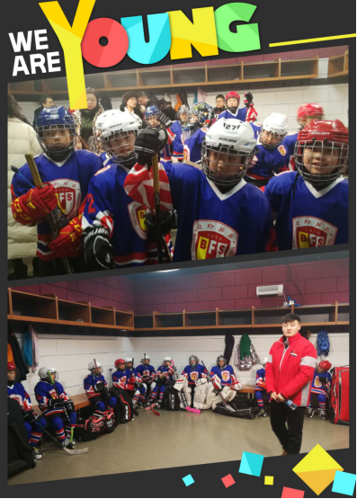 我校队员现场对战大冰小将冰球队,个个精神饱满,技术娴熟,在孙苛教练的指挥下,充分展示了我校冰球队努力拼搏,奋勇顽强的精神品质,以5:3的战绩赢得了满堂彩,39号队员李子瑜获得本场比赛“最佳运动员”称号,入选《大冰小将》节目代表大冰小将参赛的我校队员杨皓鹏获得本场比赛”最佳拼搏奖“。