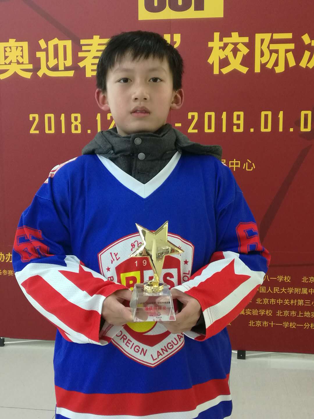 最扣人心弦的是小学乙组的比赛。乙组的冰球队员来自我校1-3年级的学生,别看他们年龄小,在赛场上却毫不怯场。在历时3天共5场激烈的比赛中,小队员们遇强更强,毫不畏惧,5场比赛赢4场,即使在第一轮就遭遇本届迎春杯冠军队中关村三小的情况下依然敢于亮剑,勇敢迎战,打出了北外附校的风格和气势,获得本届比赛第四名。