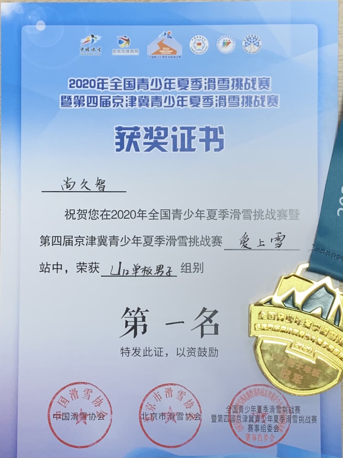 11月14日,由国家体育总局冬季运动管理中心、北京市体育局、中国滑雪协会共同主办,北京市社会体育管理中心、北京市冬季运动管理中心、北京市石景山区体育局、北京市滑雪协会承办的全国青少年夏季滑雪挑战赛暨第四届京津冀青少年夏季滑雪挑战赛第三站在北京ONTO Sonw雪上中心顺利举行,我校六(1)班学生尚久智勇夺U12单板男子组冠军。